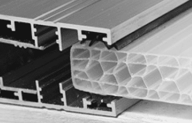 Anodisoitu alumiiniumprofiiil kennomuovikattoon ja lasikattoon.
