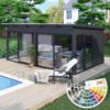 Rakennussarja erillisen terassin rakentamiseen, sis. liimapuurunko, katto ja liukuelementit.