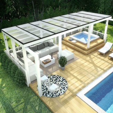 Meidän täydelliset katot on sovitettu asentaa rakennuksen seinää vasten. Täydennä tilaukseen pääteprofiilit ja alapäätytopparit erilliseen lasiterassiin ja kattorakennuksiin.